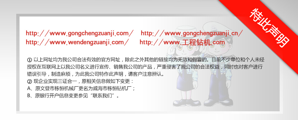 威海市棟恒鉆機(jī)廠隸屬于文登市工程鉆機(jī)廠,主要生產(chǎn)、銷售工程鉆機(jī)。它坐落于文登市西鋪頭工業(yè)園,這里科技發(fā)達(dá),交通便利,制造業(yè)集中。 自1982年建廠以來,經(jīng)過多年的優(yōu)化改革和沉淀積累,擁有精密、大型加工設(shè)備近百臺(tái)的生產(chǎn)企業(yè)之一。現(xiàn)在研制成功的GJ-400、GJ-250S、GJ-250A、GJ-240S、GJ-240A、GJ-180S、GJ-180A型等鉆機(jī)。在其它產(chǎn)品上,企業(yè)建立了長期、中期、短期的發(fā)展規(guī)劃,一系列的高性能產(chǎn)品正在不斷推出中,企業(yè)應(yīng)市場(chǎng)需求對(duì)系列產(chǎn)品進(jìn)行了優(yōu)化組合,開發(fā)了與之對(duì)應(yīng)配套的三腿、四腿單天車輪、雙天車輪鉆塔;泥漿泵—BW-160Q、BW- 200Q型球形閥泥漿泵大大提高了泵的使用性能和機(jī)械效率